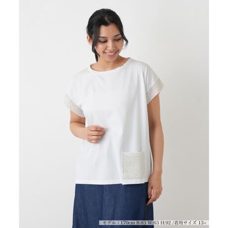 イタリアブランド「BLUBIANCO」が贈る、洗練された半袖カットソー。袖口とポケットにあしらわれたメッシュ状の編み地が、涼しげな表情と軽やかな抜け感を演出します。身頃の滑らかな生地とのコントラストが、シンプルなデザインの中に遊び心をプラス。肩の落ちたゆったりとしたシルエットは、身体のラインを拾いすぎず、リラックスした佇まいを叶えます。横に緩やかに開いたネックラインが、顔まわりをすっきりと見せ、デコルテに柔らかな印象を与えてくれる一着です。