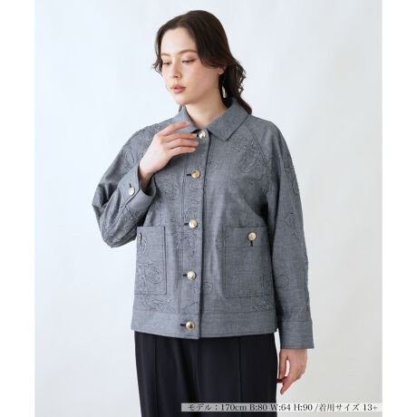 ロシャスのモチーフをオパール加工で表現した、大変手の込んだデニムジャケット。ジャカードとは異なり裏面がフラットで、驚くほどソフトな風合いを実現しました。ナチュラルなコットン素材に高度なテクニックを加えることで、カジュアルなGジャンスタイルを、エレガントで特別な一着へと昇華させています。レリアンオリジナルのゴールド釦が、さりげなく高級感を添えるアクセントに。大人の遊び心を感じさせる、お洒落な女性にこそお召しいただきたいアイテムです。