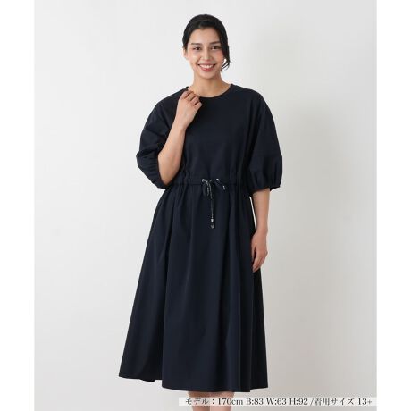 身頃の快適なジャージー素材と、袖やスカート部分の軽やかなタフタ素材を組み合わせた、異素材ドッキングワンピース。伸縮性に優れた身頃が心地よい着心地を約束し、タフタ部分がカジュアルさと華やかさを演出します。さらに、2種類のレースを贅沢にあしらうことで、高級感あふれる仕上がりに。一枚でコーディネートが完成し、お食事会やパーティーなど、特別な一日を彩るのにふさわしい一着です。ご自宅でお手入れしやすいのも嬉しいポイントです。