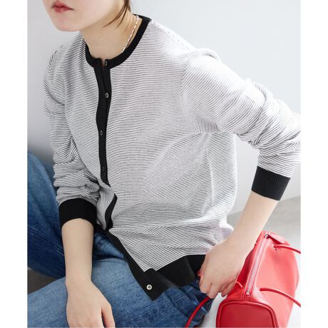 カーディガンとして羽織るのはもちろん、ボタンを留めてプルオーバー風に着る着こなしもおすすめです。