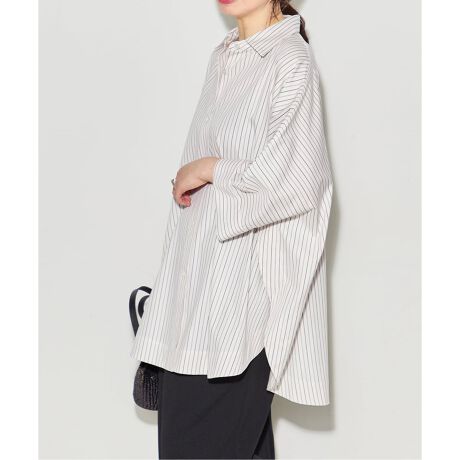 シンプルなシャツにひとさじの遊び心を加え、着るだけで洗練された印象に。程よいゆとりと長めの丈感で、パンツスタイルはもちろん、スカートとも好相性。オフィスから休日まで幅広く活躍する、大人のための一枚です。