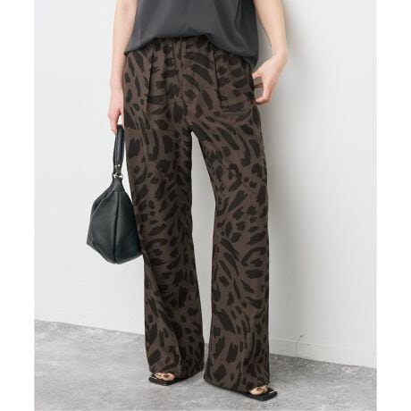 シックな配色のレオパード柄がスタイリングのアクセントになるイージーパンツ。