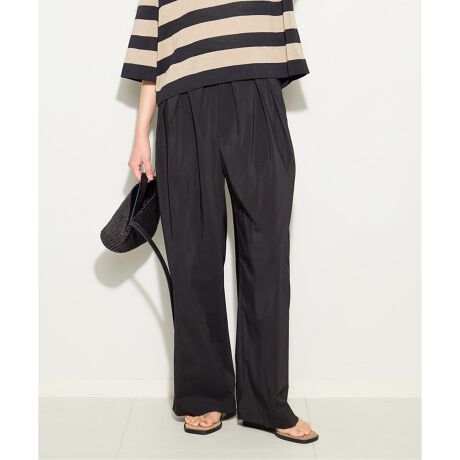 たっぷりタックの入ったワイドパンツはこれからの時期に嬉しい機能的素材。