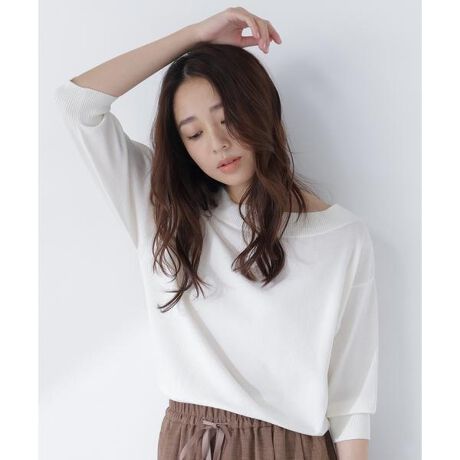 リラクシーな着心地のニットプルオーバー。広めのリブで切り替えた襟ぐりがポイントです。すっきりとしたボートネックなので、同シリーズのカーディガンとのアンサンブルもおすすめ。肘まで袖をブラウジングして抜け感のある着こなしも可能。<素材>さらっとしたタッチの綿混の糸を使用し、天竺編みで軽やかに編み立てています。<詳細>仕様・開閉なし裏地・なし透け感・なし / 光沢・なし / 伸縮性・あり生地の厚さ・普通<シリーズ>■カーディガン[品番:0176175400] ※モデルの着用画像の場合、光の当たり具合により、実際の色味と異なって見えることがございます。色味は、商品単体の画像をご参照ください。