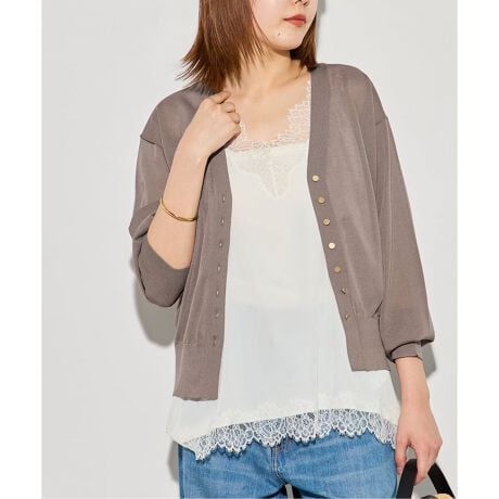 夏まではおれる着回し力抜群の1枚。透け感も楽しめるニットカーディガンはこれから初夏までレイヤードスタイルに大活躍。