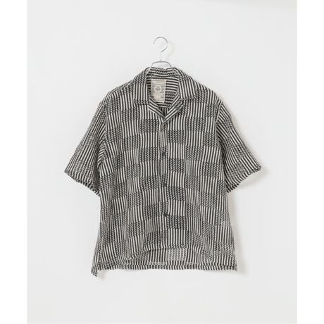 インドレース特有の凹凸感ある織りが存在感を放つ、半袖のオープンカラーシャツ。