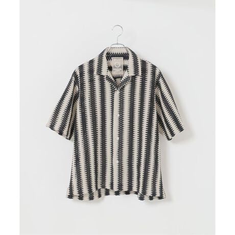 インドレース特有の凹凸感ある織りが存在感を放つ、半袖のオープンカラーシャツ。