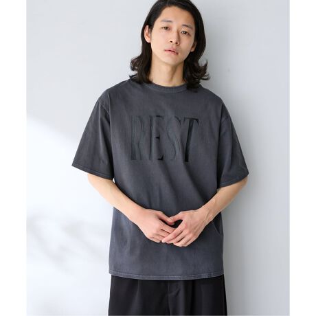存在感のあるタイポグラフィをフロントに大胆に配した、グラフィックTシャツ。