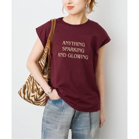 程よく上品な印象の素材感とロゴデザインで、ジャケットのインナーとしてもおすすめの一枚。さりげなく二の腕をカバーしてくれるフレンチスリーブ丈で、1枚でもさらっと様になります。