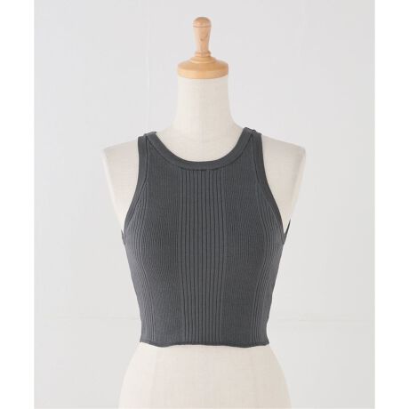 ヘルシーな印象を与えるリブ編み地、コンパクトな丈感で旬な表情を見せるタンクトップになっており、ハイウエストボトムスやジャケットのインナーに最適な1着。