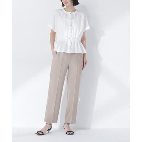 【ちょうど、いい服】1本持っておけば安心、お守りのような存在。ややスリムなストレート&くるぶし丈のシルエットは“あの人、素敵”と思わせるキレイめで上品な佇まい。□UVカット□マシンウォッシャブル □洗ってもシワになりづらいウエストダーツでコンパクトに見せつつキレイなフィット感のストレートパンツ。微ストレッチ素材で細身シルエットでも快適なはき心地です。脚のラインをキレイに見せてくれるので、スタイルアップ効果も期待。チュニック丈トップスとも合わせやすく、キレイめからカジュアルまで幅広く活躍します。<素材>微ストレッチが効いた合繊素材を使用しています。<詳細>仕様・前ファスナー裏地・なし透け感・なし / 光沢・なし / 伸縮性・ややあり生地の厚さ・普通※モデルの着用画像の場合、光の当たり具合により、実際の色味と異なって見えることがございます。色味は、商品単体の画像をご参照ください。