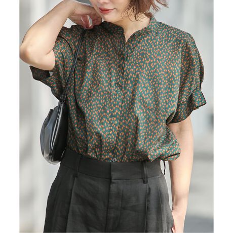 柔らかく着心地の良い涼しい素材を使用し、袖口にタックを入れて女性らしさと大人っぽい雰囲気のシャツブラウス。
