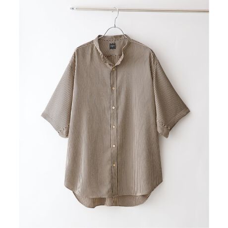 フランスの伝統を纏う、優雅なナイトシャツ・デザイン:古き良きフランスのヴィンテージウェア、就寝用の「ナイトシャツ」を着想源としたバンドカラーシャツ。浅めのバックヨークやハンガーループなど、当時の情緒を感じさせる意匠を随所に散りばめました。