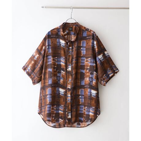 《予約》パターンクレープ ショートスリーブ バンドカラーシャツ