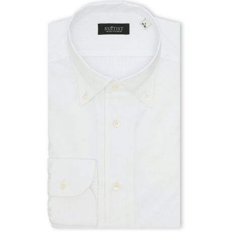 衿型はドレッシーな雰囲気が漂う、ワンピースカラーのボタンダウンです。衿から前立てまでが一枚生地なので、衿が自然に立ち上がり美しいロールができます。胸ポケット無しのすっきりとした見た目と裏前立がポイント。生地・フォルム・縫製など、細部にまでこだわったハイクオリティな一枚です。