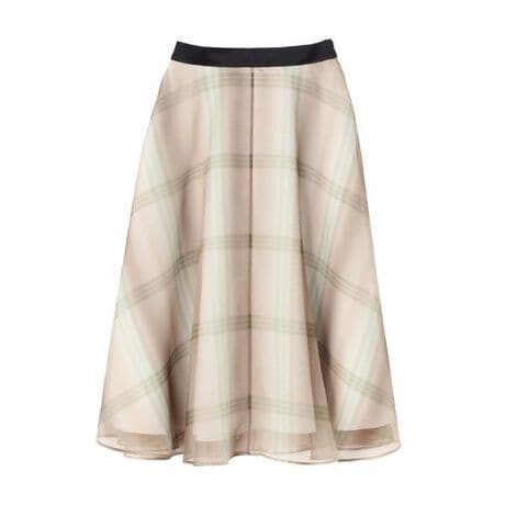 オーガンジーに淡いトーンのオンブレチェックをプリントしたフレアスカート。