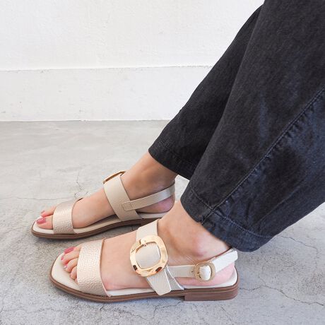 配色で魅せるフラットサンダル。