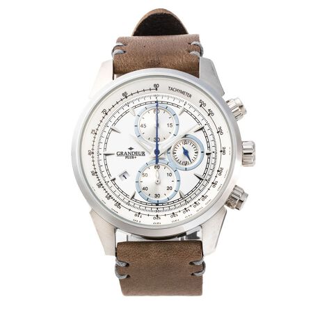 腕時計 メンズ 男性用 GRANDEUR PLUS クロノグラフ イタリア製レザー GRP001W5