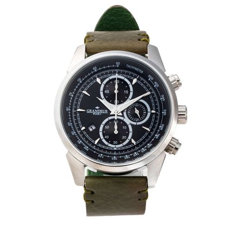 腕時計 メンズ 男性用 GRANDEUR PLUS クロノグラフ イタリア製レザー GRP001W7