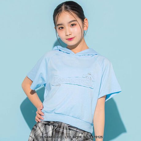 ラフに着られるラグラン袖に、胸元のシナモロールのラメ刺しゅうが映える主役級フーディ。