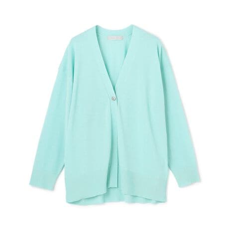■デザインフロントに配された一つボタンがすっきりとした印象のカーディガン。腰まわりをしっかりカバーするミドルレングス、程よいゆとりを持たせたシルエットで体型問わず着用いただけます。