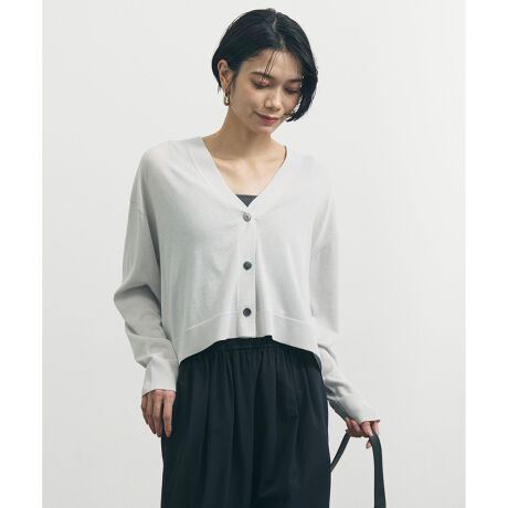 ■デザインクロップド丈でワイドシルエットのVネックカーディガン。ワンピースやカットソーの上から気軽に羽織れ、気温が不安定な時期の温度調節にも最適なアイテムです。デイリーユースはもちろん、オフィススタイルやちょっとしたお出かけなど多様なシーンで活躍します。