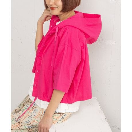 トレンドスタイルに欠かせないクロップド丈のシャツ。フードをつけてカジュアルな雰囲気に仕上げました。コットンリネン素材を使用しているので普段使いにぴったり。Tシャツに羽織ると素材のコントラストが、さりげないアクセントに。フード周りと裾にひもを通しているので、シルエットの調節が可能です。