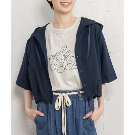 トレンドスタイルに欠かせないクロップド丈のシャツ。フードをつけてカジュアルな雰囲気に仕上げました。コットンリネン素材を使用しているので普段使いにぴったり。Tシャツに羽織ると素材のコントラストが、さりげないアクセントに。フード周りと裾にひもを通しているので、シルエットの調節が可能です。