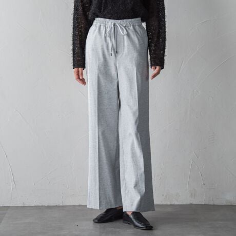 ウエストはゴム仕様でリラクシーな着用感ながら、センタープレス入りできちんとした印象に。