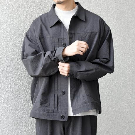 シアサッカー素材ですので軽量で肌離れが良く、少し暑い時期にもライトジャケットとしても重宝すること間違いなし!