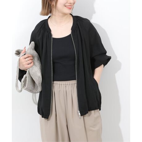 《予約》[手洗い可]シアーギャザージップブルゾン