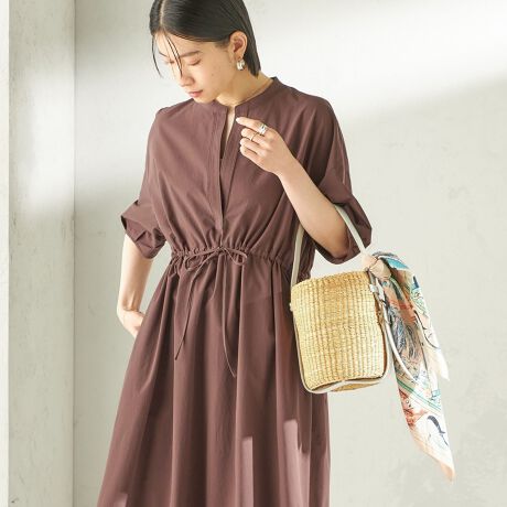 《予約》〈接触冷感 / 撥水加工〉TEXBRID(R) タフタ ウエスト 切替 ワンピース