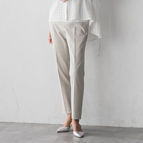 腰まわりは程よくゆとりを持たせつつ、裾にかけてすっきりと細くなるラインで、きちんと感のある印象に。