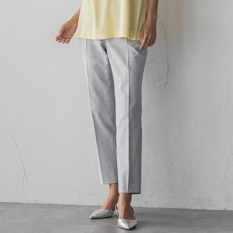 腰まわりは程よくゆとりを持たせつつ、裾にかけてすっきりと細くなるラインで、きちんと感のある印象に。