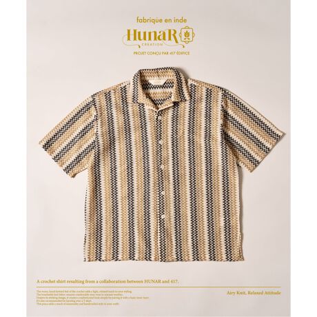 HUNARと417のコラボレーションによるクロシェシャツ。