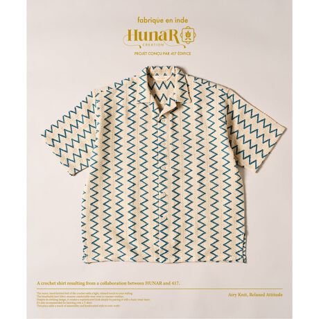 HUNARと417のコラボレーションによるクロシェシャツ。