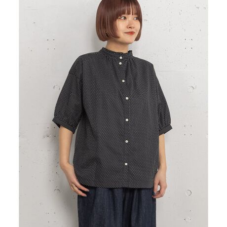 カットソーと布帛生地をドッキングさせたデザイントップス。細巾で控えめなフリルデザインと、ぷっくりとしたパフスリーブがキレイめなスタイルにも使えます。ブラウスのようにきちんと見えながら、カットソー素材の柔らかな肌なじみが着やすいポイント。前後どちらでも着用できるフレキシブルなアイテムです。