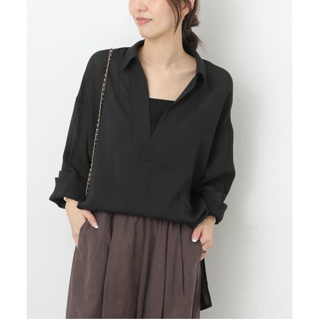 深めのスキッパーネックが首元をすっきり見せ