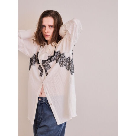 トレンド感のあるランジェリーディテールを取り入れたシャツ。