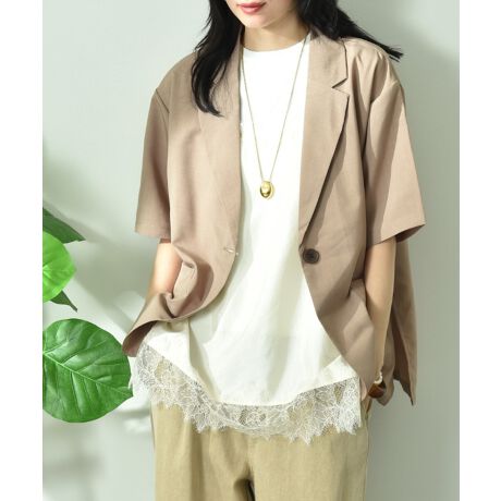 リネンライク半袖テーラードジャケット