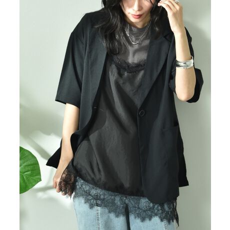 さらりとした肌さわりが特徴のリネンライクな素材で作られたジャケット。ボトムスや体系を選ばず着まわしやすい着丈にこだわった1枚です。1つボタン開きのすっきりしたシルエットは女性らしく、インナーも合わせやすいのがポイントです。