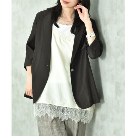 これからのシーズンに活躍すること間違いなし!さらりとした肌触りが心地よく、スラブ感が程よくカジュアルダウンしてくれます。1つボタンのすっきりした印象のテーラードカラーで、きちんと感もしっかりと出るアイテムは着回しに重宝するお勧めなジャケットです。ウエストは絞り過ぎない程よいバランスで、オフィスなどのデスクワークで袖口が邪魔にならないようにスリットを入れ、ターンバックが出来ます。