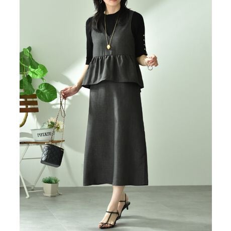 リネンライクウエストペプラム切替ワンピース
