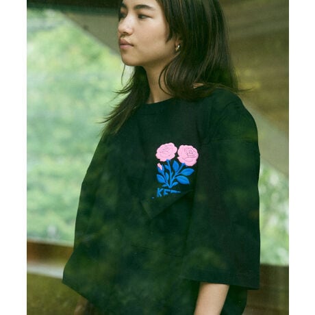 花のモチーフは立体感のある発泡プリントで表現され、柔らかな印象ながら存在感のある仕上がりに。