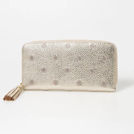 perche ペルケ 牛革ドット刺繍ラウンド長財布