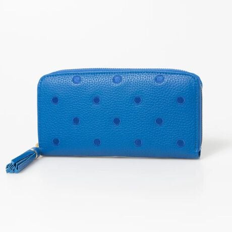 perche ペルケ 牛革ドット刺繍ラウンド長財布