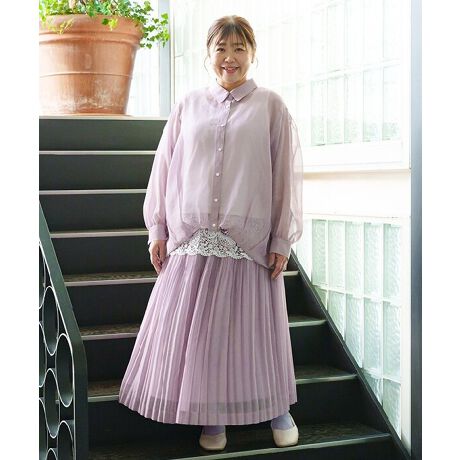 腰まわりまで細かなプリーツを施すことで、広がりすぎずすっきり見えを実現。