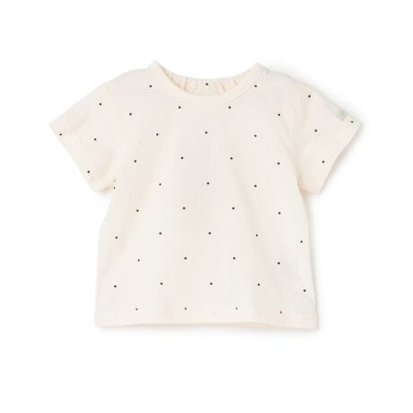 日常に馴染みやすいナチュラルな色合いの半袖Tシャツです。可愛らしいドットとレモン、海をテーマにした総柄のアソート展開。バックネックにはゴムを入れており、スムーズな着脱が叶います。ベーシックなシルエットでお手持ちのボトムスとも相性が良く、デイリー使いにぴったりなアイテムです。