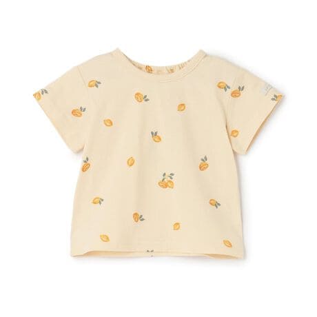 日常に馴染みやすいナチュラルな色合いの半袖Tシャツです。可愛らしいドットとレモン、海をテーマにした総柄のアソート展開。バックネックにはゴムを入れており、スムーズな着脱が叶います。ベーシックなシルエットでお手持ちのボトムスとも相性が良く、デイリー使いにぴったりなアイテムです。