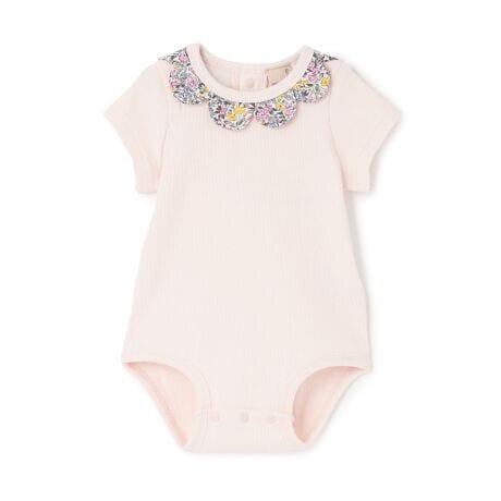 バックネックと股部分にスナップボタンがついており、お着替えやおむつ替えも簡単に行えます。